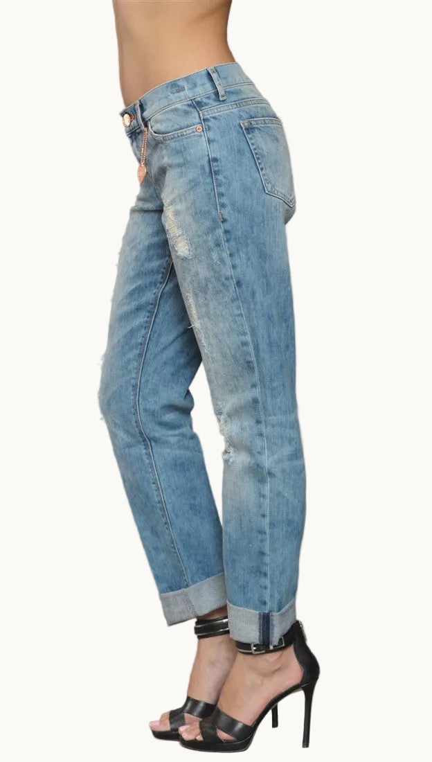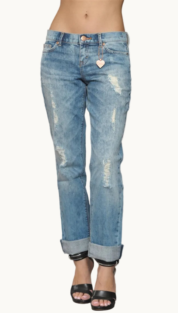 These light washed Dittos have destroyed details along the front thigh and leg areas. Roll these jeans up for the perfect relaxed, "boyfriend jean" look!