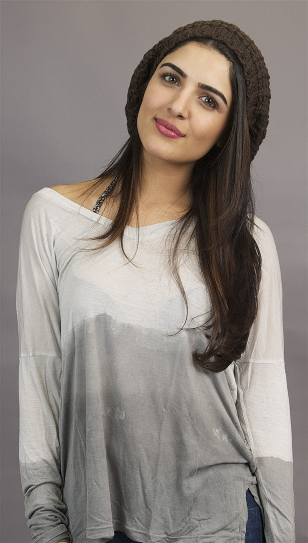 Slouchy Beret Crochet Pattern Hat in Brown from Kinkate Accessories @ Apparel Addiction - Winter Hats