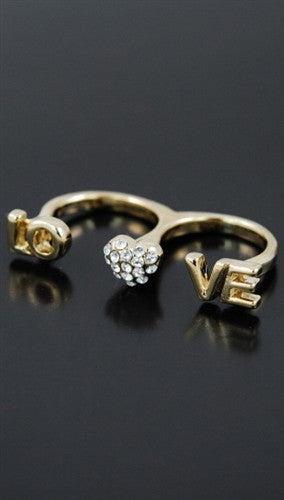 Two Finger Love Ring in Gold or Gunmetal by Soho Collection @ Apparel Addiction - Jewelry - Rhinestone Studded Heart