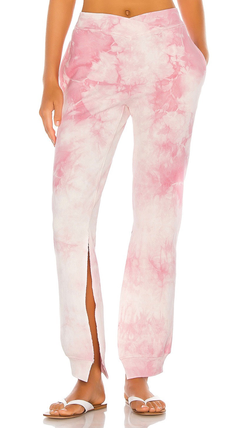 Signature slim-fit pants are the go-to sweatpants you need. Constructed with super soft cotton and detailed with an elastic v front waistband, slanted side pockets, and a raw edge split hem. These subtle pink tie dye pants are paired perfectly with the Ranger sweatshirt or your fav white tee for a stylish, cozy look. These sweatpants are a must to upgrade your cozy collection